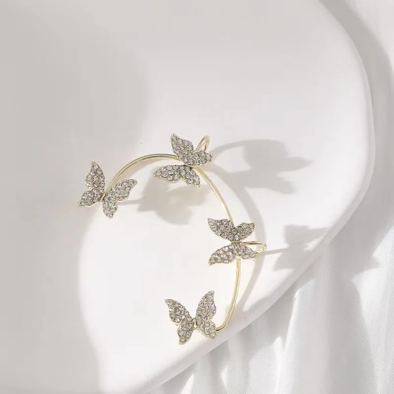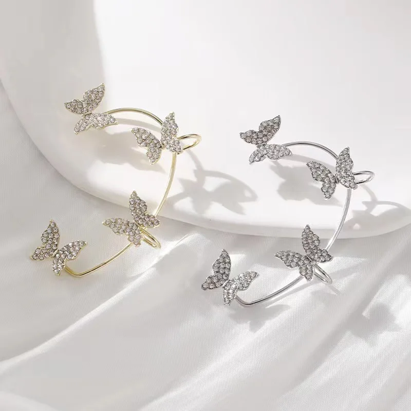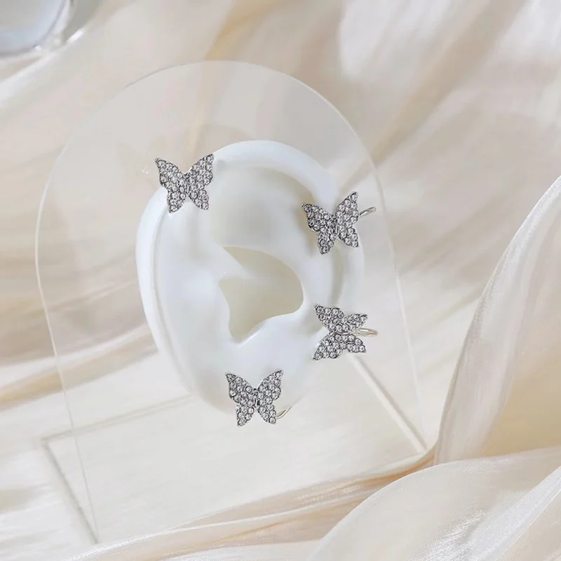 Clip Earrings Silver Color Metal Butterfly Ear Clip without Piercing for Women Sparkling Zircon Ear Cuff Wedding Fashion Jewelry